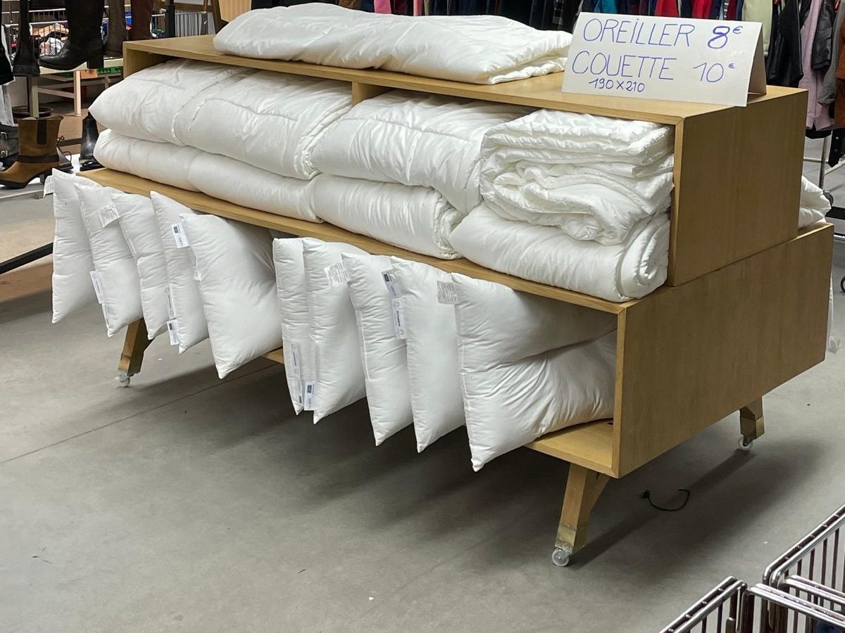 Matelas, couettes, oreillers, tables de chevet, poufs, tables basses, casiers, penderies, fauteuils… : dans le cadre d’un partenariat avec le Comité d’organisation des Jeux Olympiques (COJO), 54 000 meubles et près de 22 000 articles de literie du village olympique ont été donnés à Emmaüs France à la fin de Paris 2024, afin de leur assurer une seconde vie solidaire. Une première dans l’histoire des Jeux ! Une partie des objets a pu être vendue à petits prix dans les différents magasins Emmaüs. Une autre, permet d’équiper progressivement des ménages précaires accédant pour la première fois à un logement pérenne, via le dispositif de la Banque Solidaire de l’Équipement (BSE) porté par Emmaüs Défi.