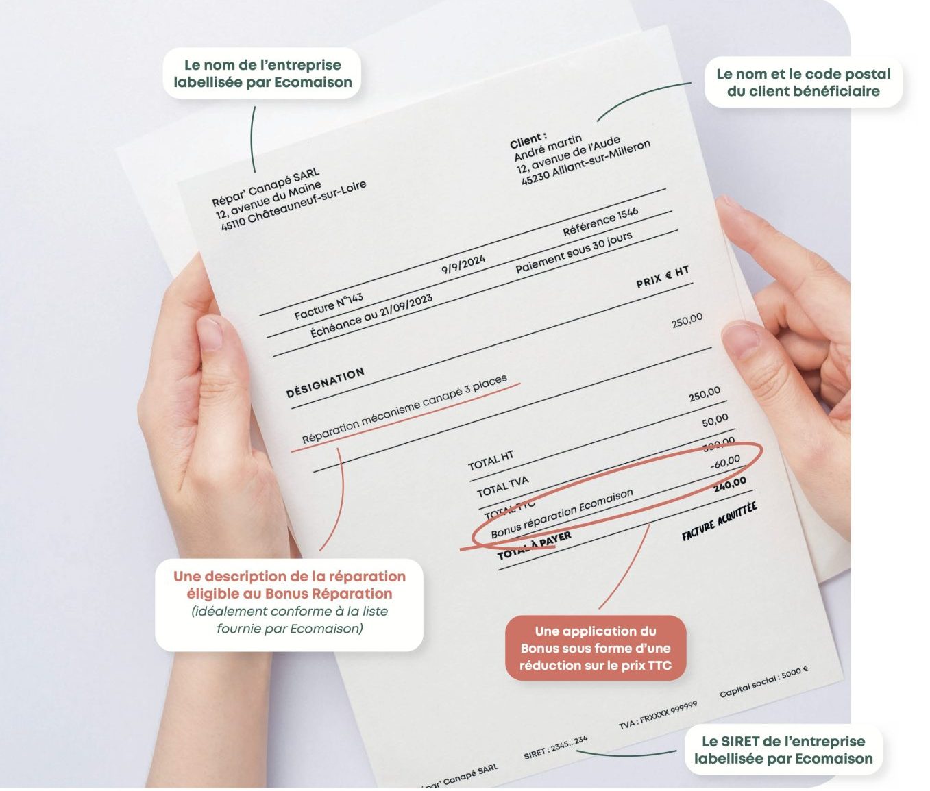 En devenant réparateur labellisé, vous pourrez faire bénéficier vos clients du Bonus Réparation et vous faire rembourser cette avance par Ecomaison.