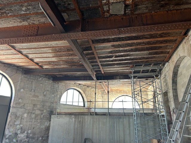 Le bâtiment, construit en 1840 avec des murs en pierre et modernisé dans les années 1970 avec une charpente en lamellé-collé, nécessite une approche minutieuse. Chaque élément fait l’objet d’une attention particulière : les charpentes sont déposées par grutage, les luminaires testés et équipés de LED, les radiateurs nettoyés et leurs joints remplacés.