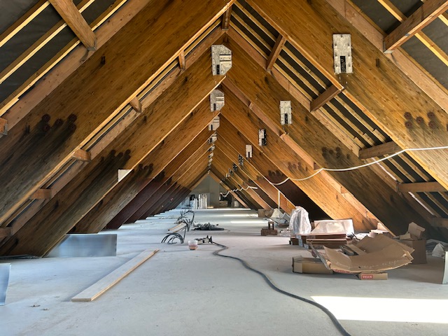 Le bâtiment, construit en 1840 avec des murs en pierre et modernisé dans les années 1970 avec une charpente en lamellé-collé, nécessite une approche minutieuse. Chaque élément fait l’objet d’une attention particulière : les charpentes sont déposées par grutage, les luminaires testés et équipés de LED, les radiateurs nettoyés et leurs joints remplacés.
